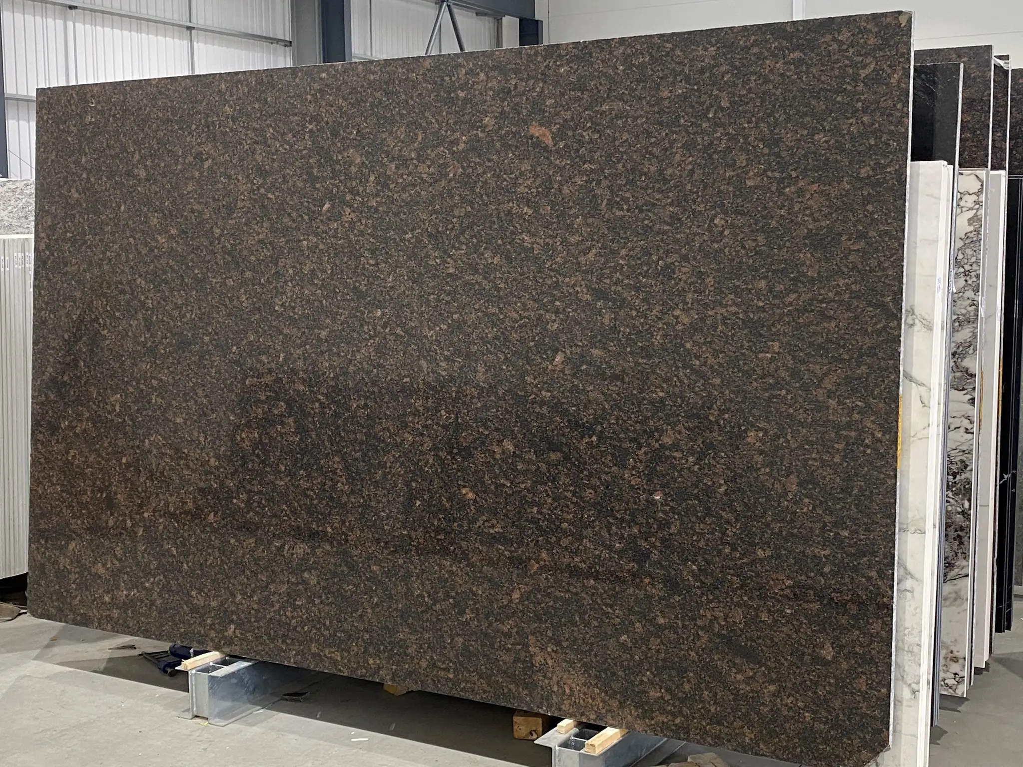 We provide granite in thicknesses from 20 to 30 millimetres, often for kitchen worktops. It is inherently heat-resistant and cool to the touch, making it perfect as a surface to cook and bake on. We hold stock of polished (shine), leathered (textured) and honed (matte) granite.