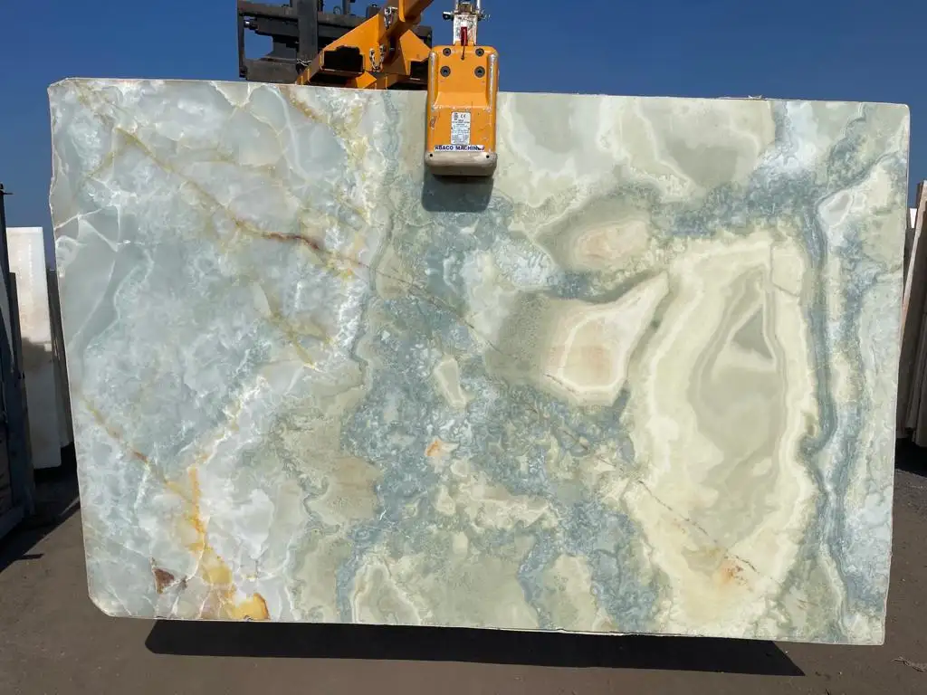 Onyx is known for its unique banded pattern and subtle colours, giving it an exotic and high-end aesthetic. You can use onyx to create surfaces and features to create an interior that is unique, luxurious, and above all practical.